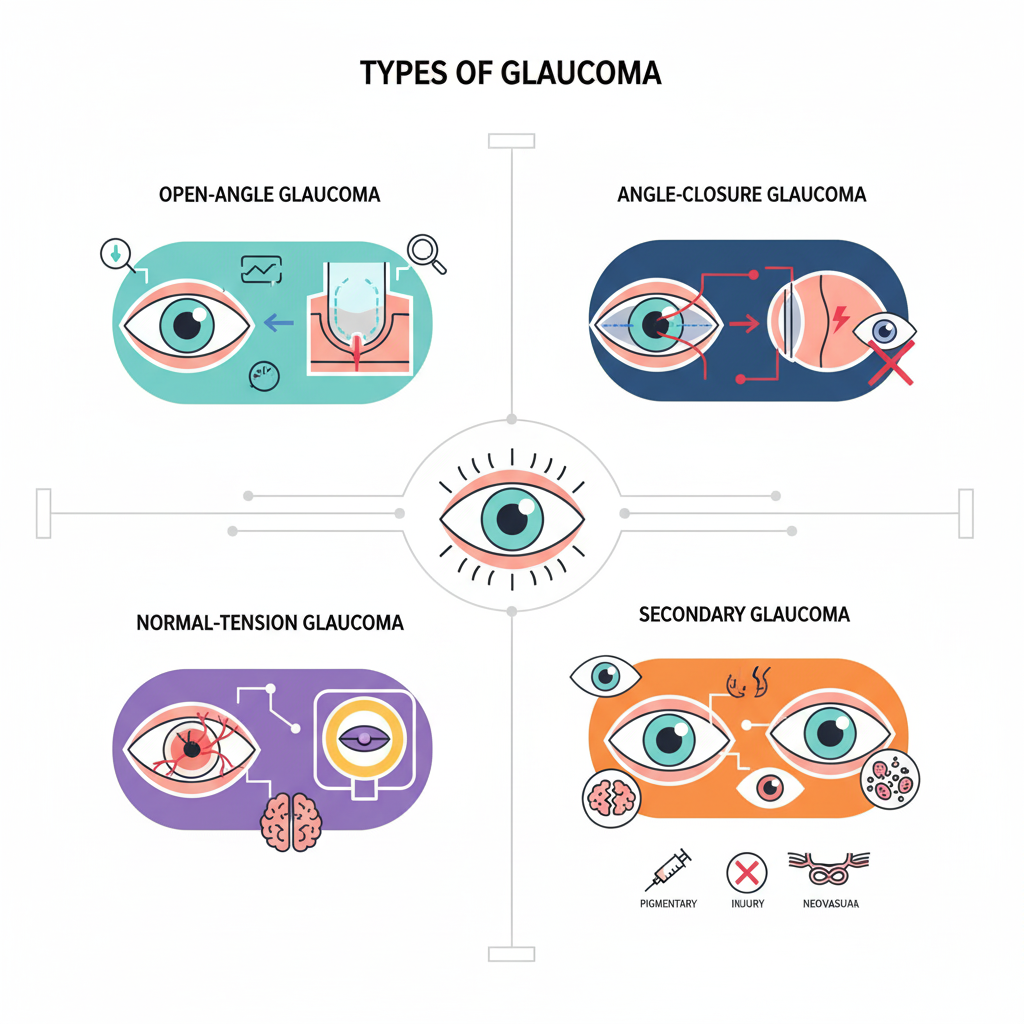 “ما هو الزرق” يشير بشكل عام إلى مجموعة الأمراض التي تتضمن عمليات تلف العصب البصري. “زرق الزاوية المفتوحة” هو أكثر الأنواع الفرعية شيوعًا، حيث تكون زاوية التصريف مفتوحة من الناحية التشريحية ولكن التصريف معطل.